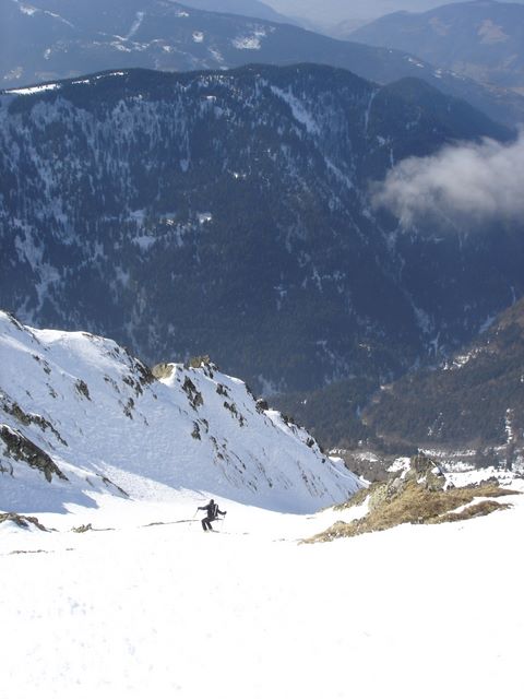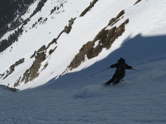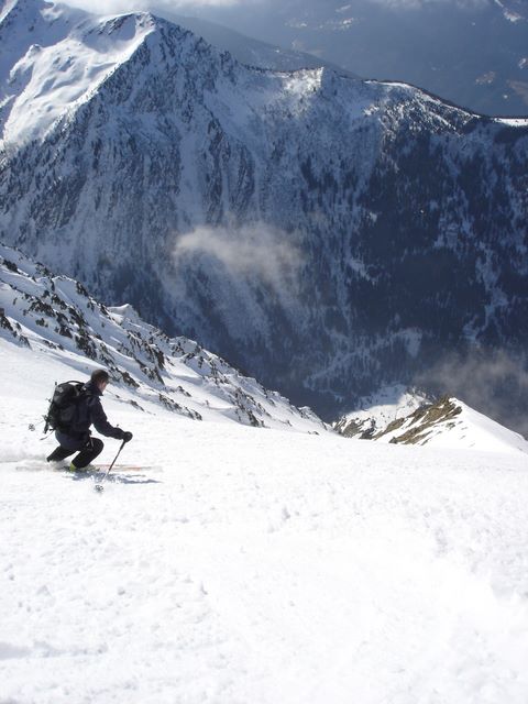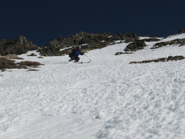 Bon, on a profité du télésiège pour gagner le sommet des Plagnes. Pour le reste que du bonheur ... sauf la remontée en plein cagnard de la face ouest sous Claran. Déjà on avait battaillé ferme dans les vernes pour rejoindre en traversée le bas de la Pierre du carre, mais les 500 m de déniv pour remonter ont fini de me carboniser !! Préférer l'option voiture au Veyton. Pour le reste, superbe course et conditions optimales dans le couloir. Une petite pensée à mes voisins, quand j'habitais Allevard, qui m'ont fait découvrir cette montagne pour ma première rando pédestre avec un tout petit jeune qui allait devenir ... LTA .
