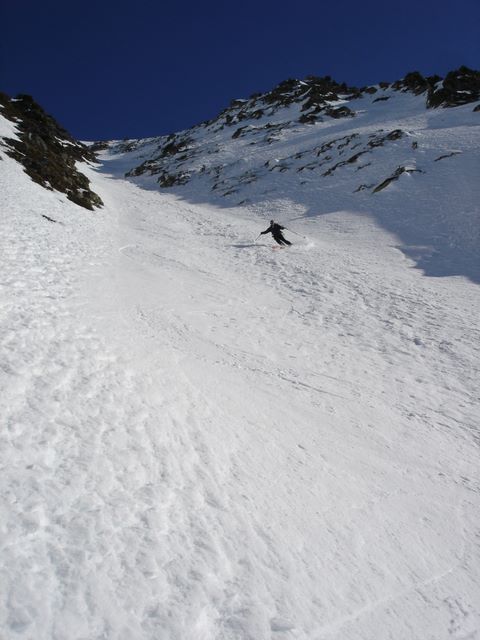 Montée F4.1 --> descente F3 à 14h00 et remontée par les grands pentes Ouest sous Claran (15h30 - 16h30). On a pas remontée le couloir de la cristallière mais la pente suspendue au fond du cirque qui sort par une petite goulotte bien raide. Fin identique pour rejoindre le sommet