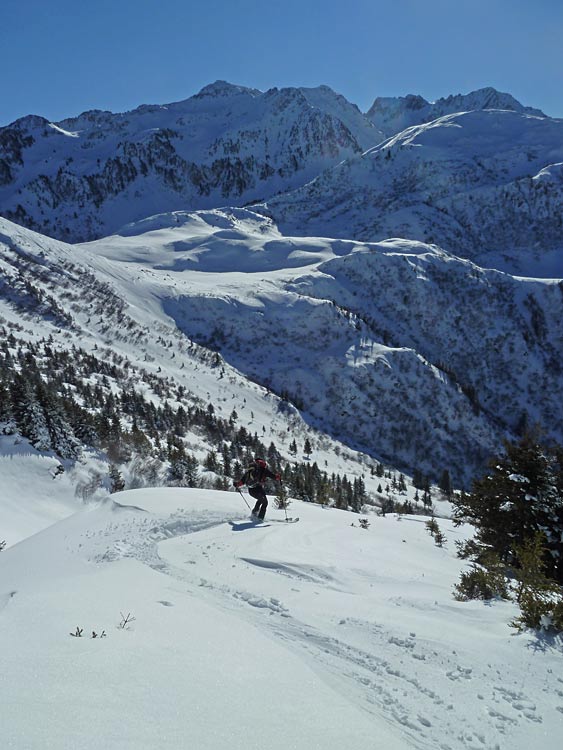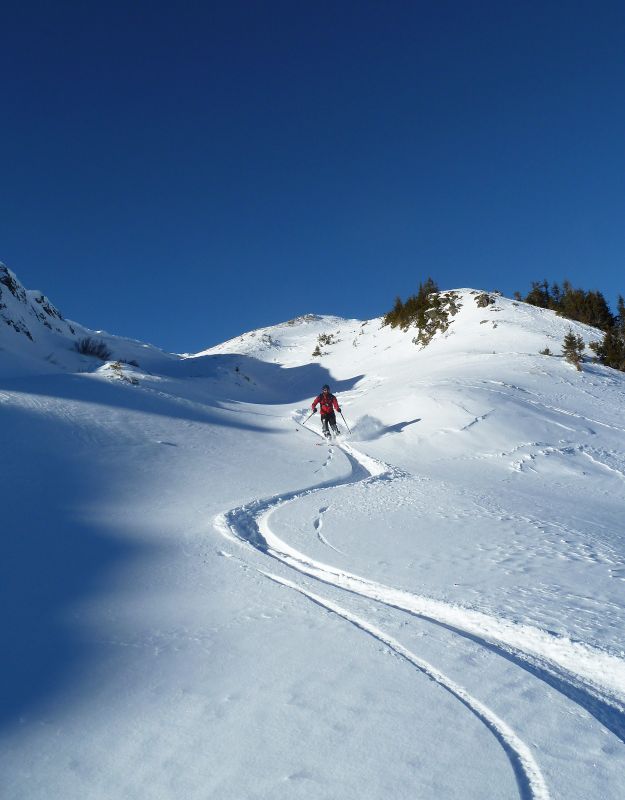Une jolie incursion dans le sauvage versant sud, où après un début bien crouté nous retrouvons une neige plus facile dans les orientations plus ouest.
