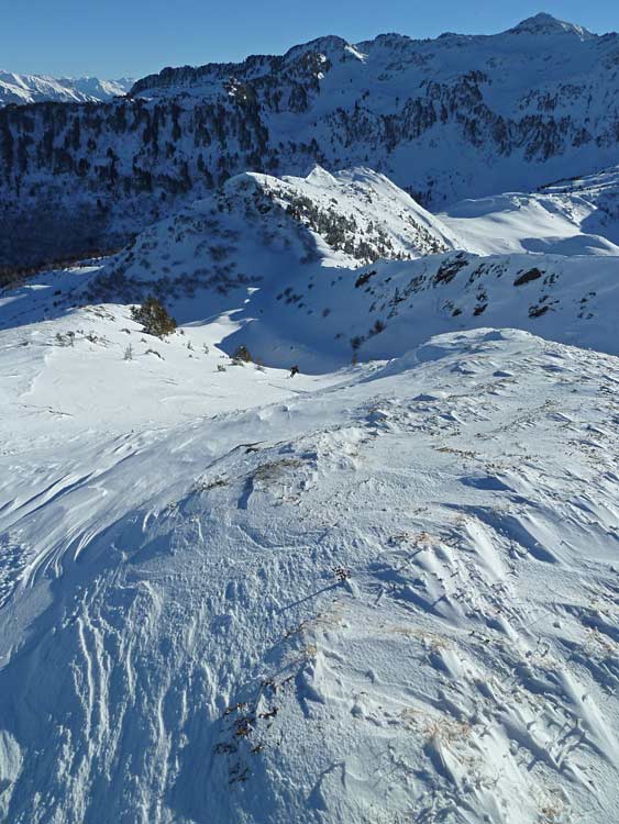 En sud les versants à l'abri du vent ont commencé à croûter avec le soleil de la veille.