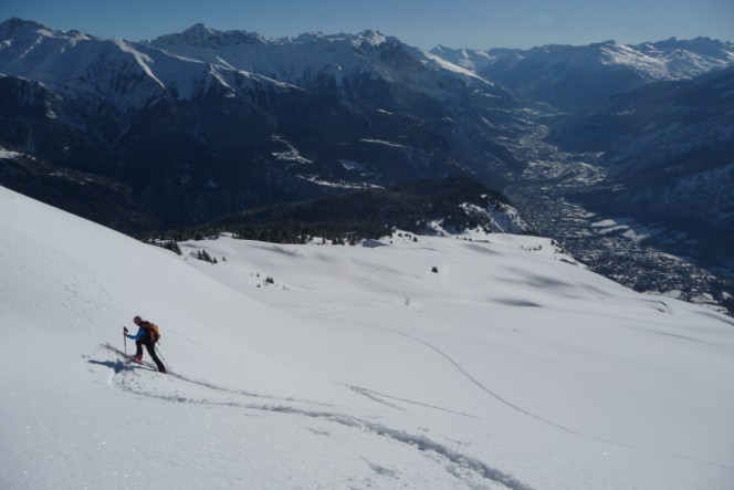 Cette boucle me fais penser à l'Infernet, bien que moins raide, descente toute aussi longue avec une montée paisible au soleil et une descente en bonne neige l'autre coté et arrivé presque sur l'autoroute en bas. Les 50 premiers mètres sont raide, après ça se calme vite, pas de ressaut en ce moment et tout bon jusqu'en bas.