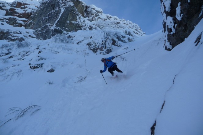 On c'est méfié de l'entrée du couloir, poudreuse recouvrant une neige dure et forme d'entonoir, puis tout bon.