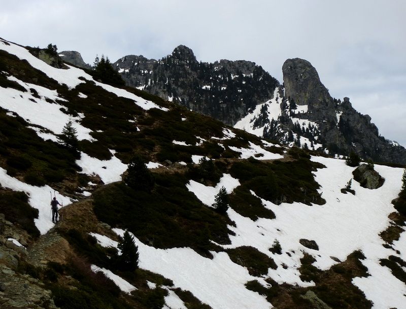 A la montée, on peut chausser à 1650 dès la sortie de la forêt, quelques déchaussages plus haut pour traverser des zones non enneigées. A la descente retour jusqu'à 1500; limite habituelle des bonnes années (à cette époque). Cette année par contre c'est beaucoup plus large.