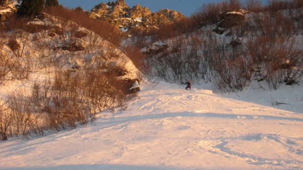 Après avoir pris notre but au Couttet on se rattrape au Central Ouest avec une lumière magnifique! C'était d'ailleurs le seul itinéraire sans trace de ce si jolie sommet. En continuant dans l'axe du couloir on rattrape la piste forestière après avoir coupé du bois, mais sans déchausser.
