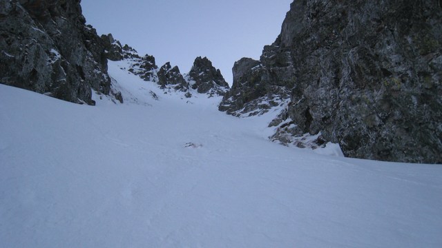 Alternance de Carton , grain fin , poudre dense sur la calotte. Le couloir est bien rempli et la neige est correcte en visant les zones de poudre dense. On fait meme du tres bon ski dans la zone de verne vers 1800m!