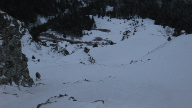 Montée par la cabane et l'épaule SO ( en evitant le haut de l'entonnoire) et descente par une variante du central Ouest situé entre celui ci et le grand entonnoir Ouest.