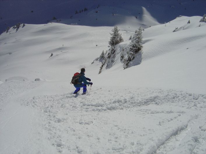 Du bon ski, une météo meilleure qu?attendue. La foule des très grands jours dans toutes les classiques du coin, on est arrivé néanmoins à passer les premiers en face est du Grand Eulier.