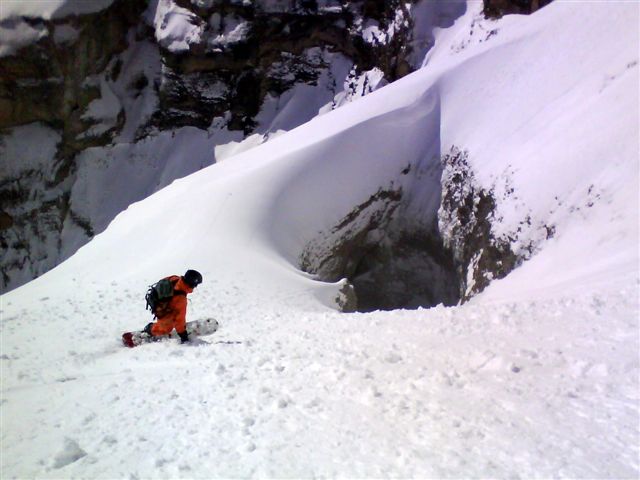 Grosses accumulations sous les parois du cirque (>50 cm de neige roulée)