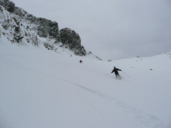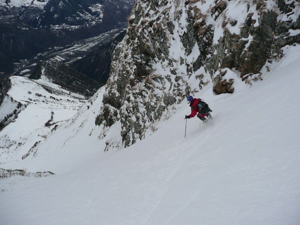 Montée B6, descente par la combe rive droite qui est un peu plus raide. Deux étroitures mais pas de problème particulier.