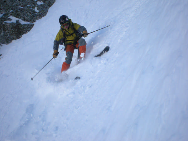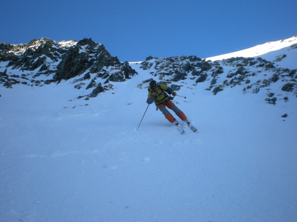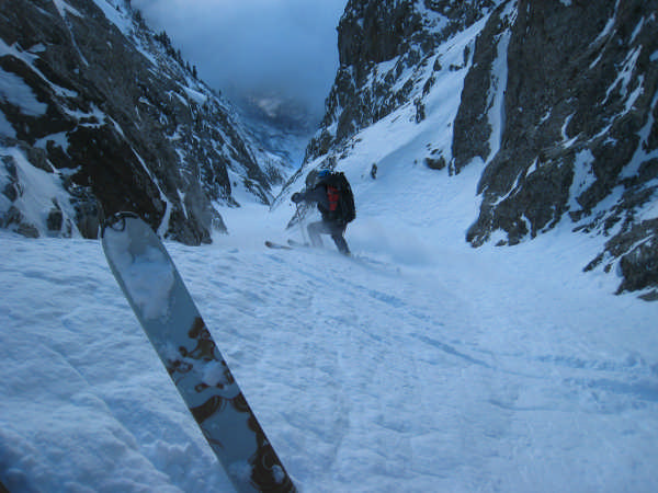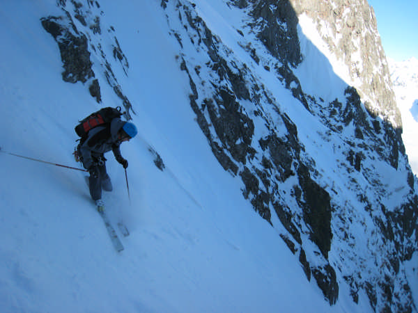 Les conditions étaient bonnes pour ce genre de pente (neige ferme), descendre dans 1m de poudre dans ce coupe gorge , ça doit faire peur!