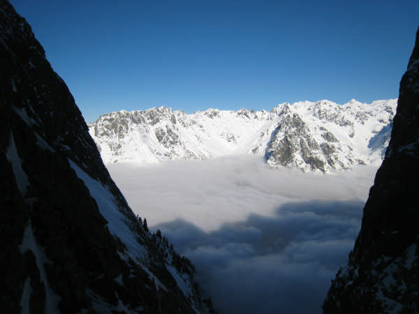 La voie de montée n'a pas souffert du vent du Nord, de tres bonnes conditions! Le haut du couloir est en neige bien compacte, tres agréable à skier dans le raide.Une zone de poudre au dessus du rappel, ou dans les contrepentes rive droite. Pas de carton et une neige globalement douce sur l'itinéraire.