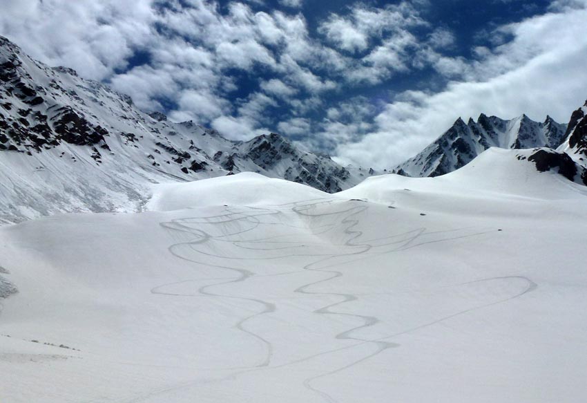 bon regel, dégel faible sur le névé. corniches importantes dominant le couloir. pas mal de relief dans celui-ci