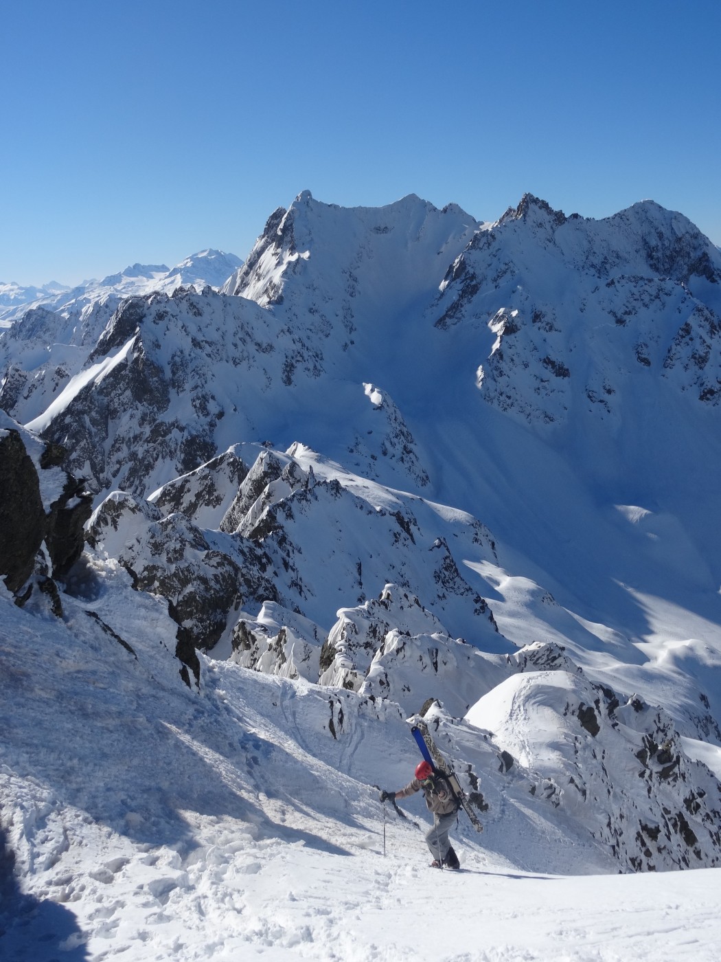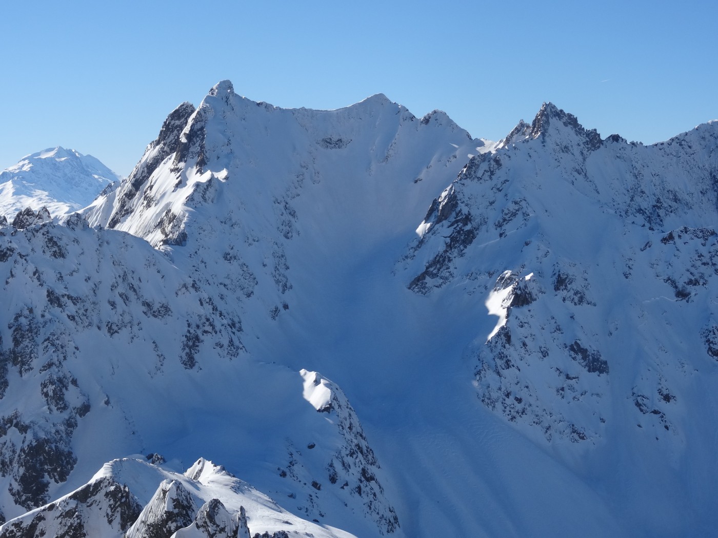 RAS, en aller/retour. Chaussage en haut du couloir sud car conditions délicates à ski plus haut (a/r au sommet à pied)