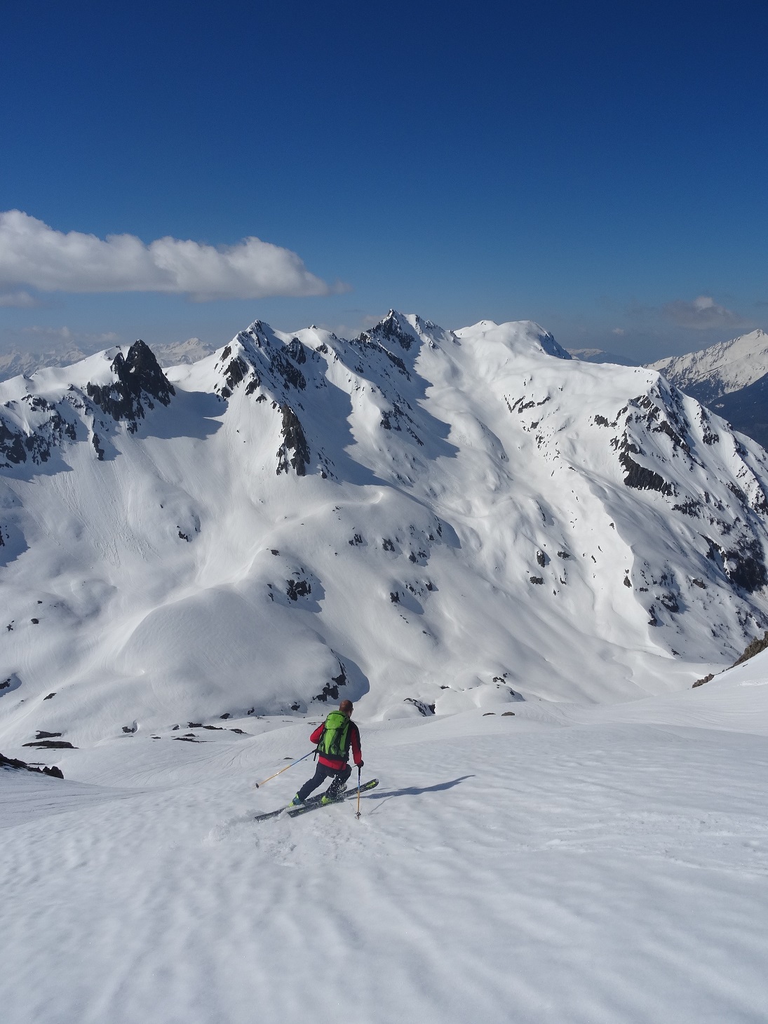 Première au Grand Mont pour nous deux. Skiabilité pas mémorable, de type estivale, mais on a connu pire.