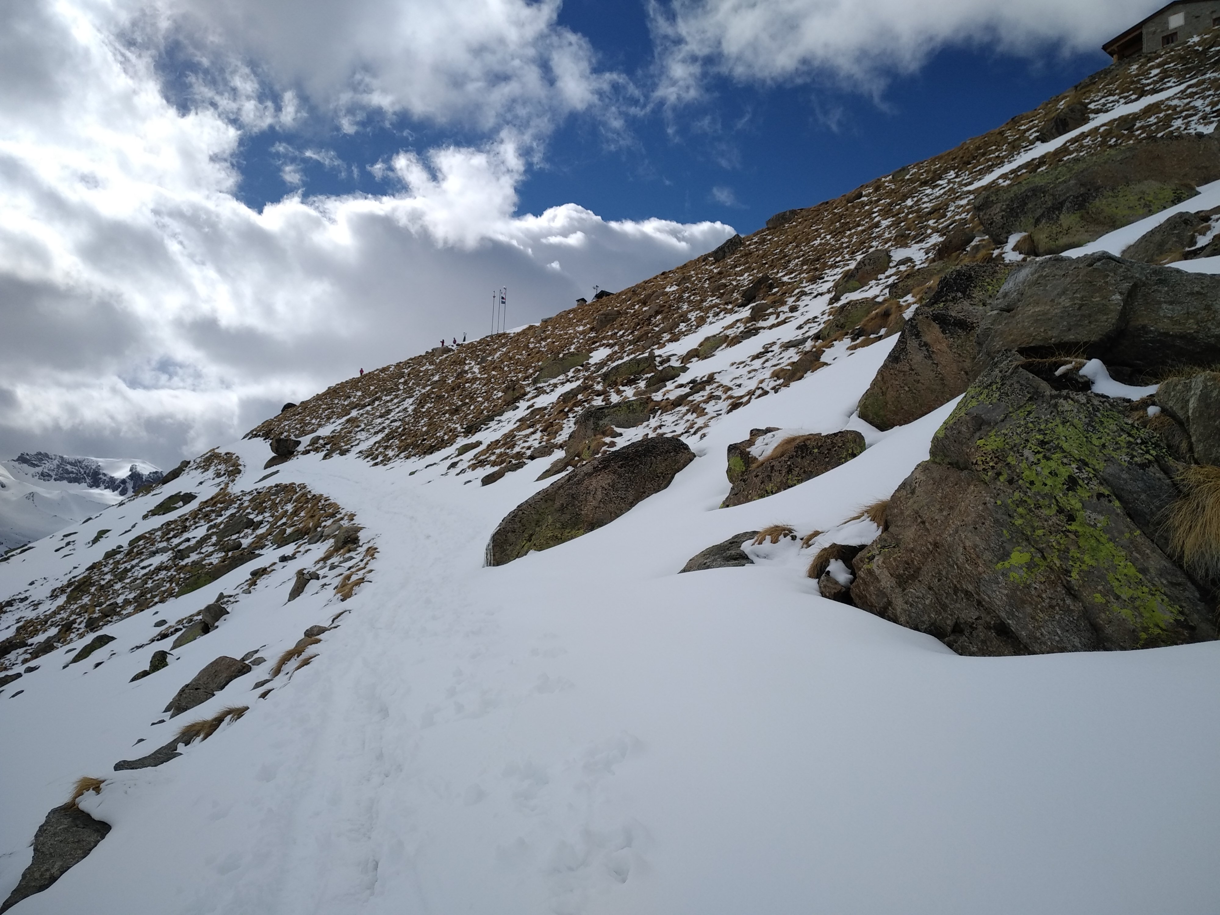 pente finale et dos d'ane entre les 2 glaciers soufflés par la vent (couteaux à la montée sur cette partie).