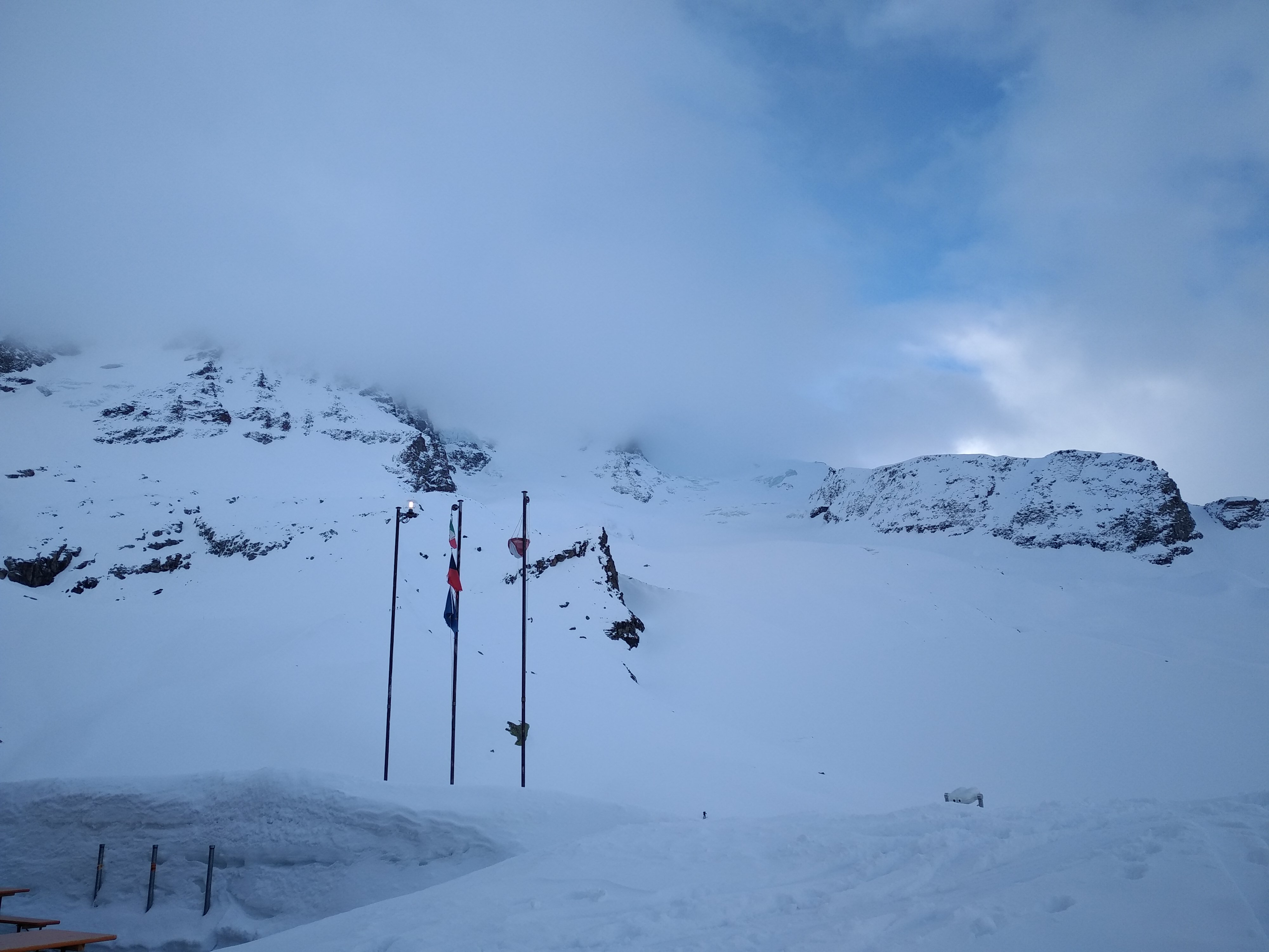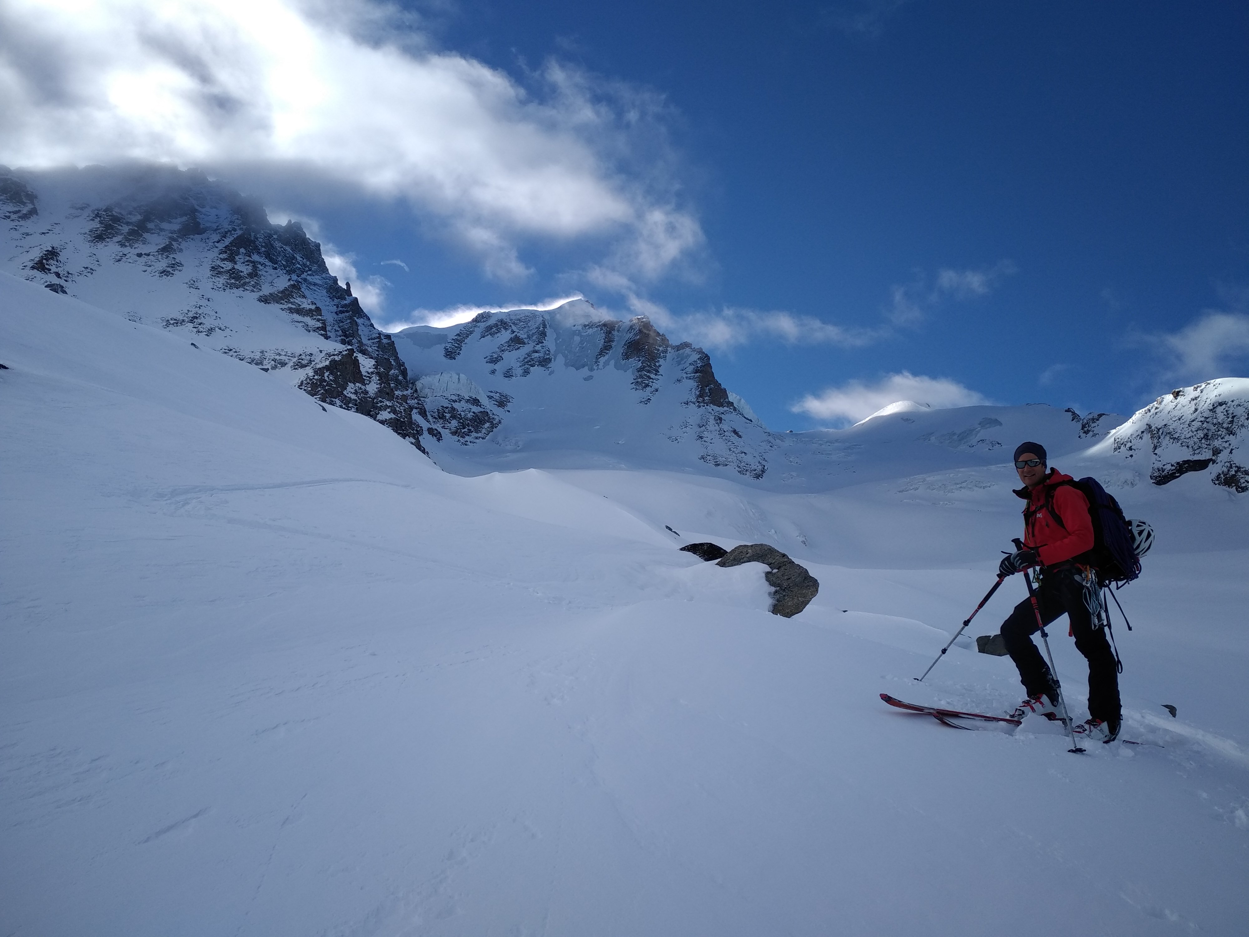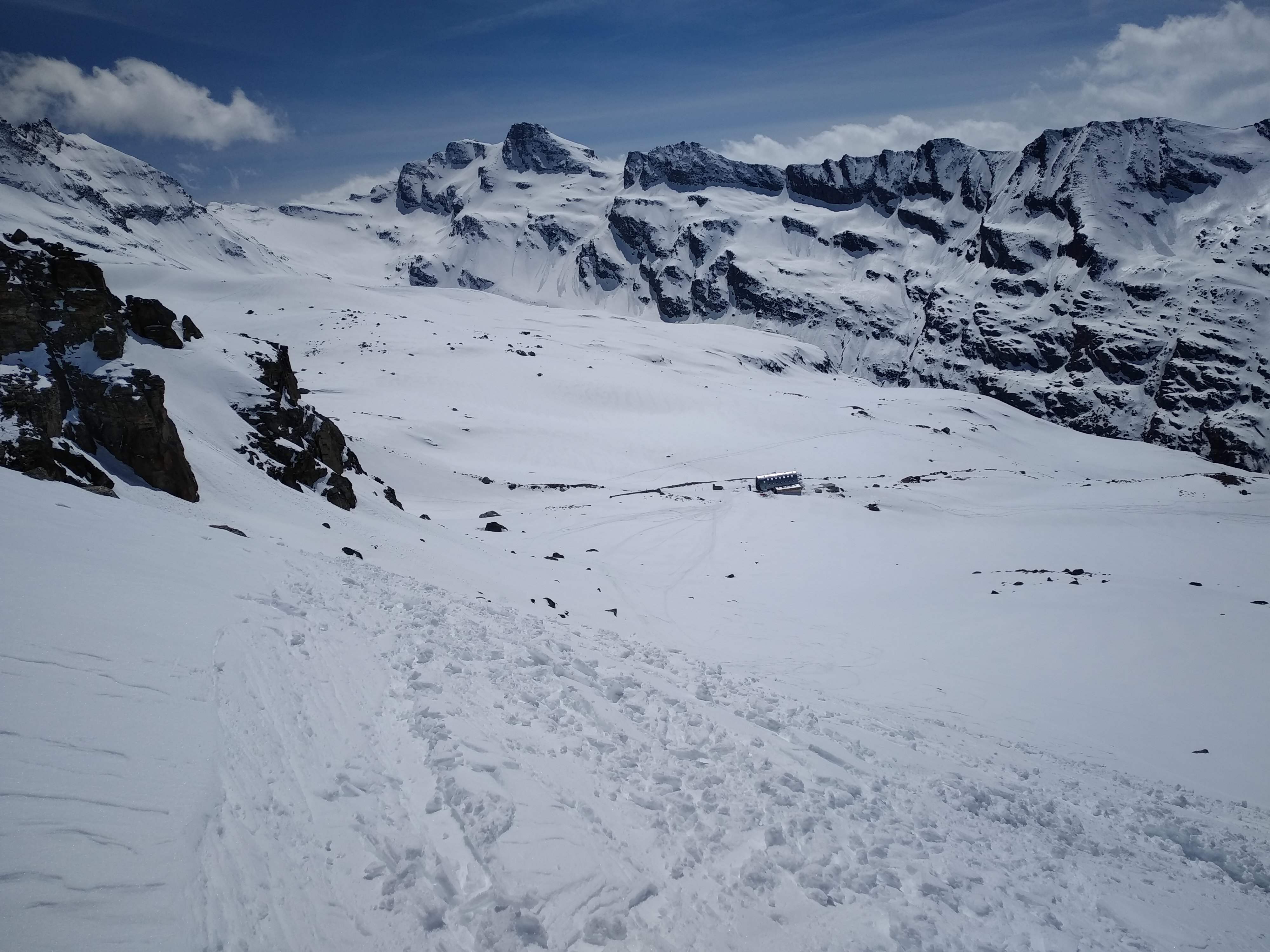 Glaciers bien enneigés (pas d'encordement ni à la montée ni à la descente).