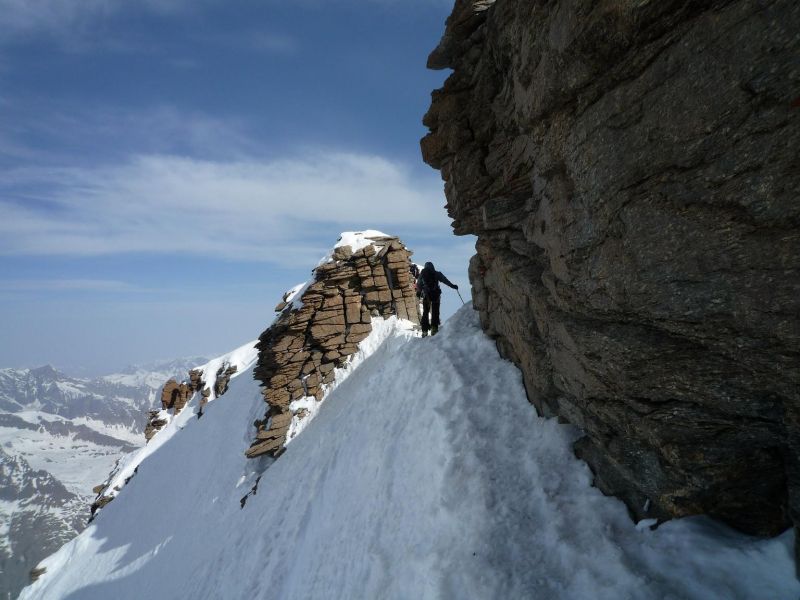 Déchaussage vers 2150m, témoignant d'un enneigement très important cette année. Le Val d'Aoste apprécie les flux de sud...