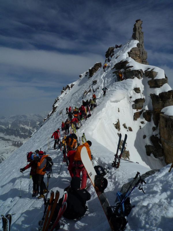 Au sommet, ce sera la foule des grands jours, qui se bouscule sur un espace étroit et corniché. Dans ces conditions, il nous a semblé que l'accident n'était pas loin.
