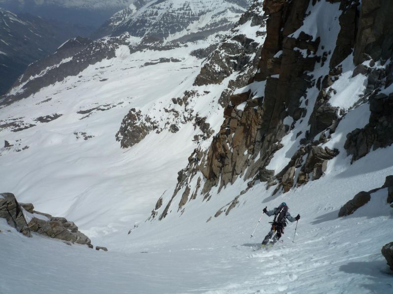Aux antipodes, la solitude ressentie dans le couloir Aurora. Le couloir, un billard nord-ouest, voit le soleil assez tard, et fait penser à Barre Noire, en plus long mais un peu moins soutenu.