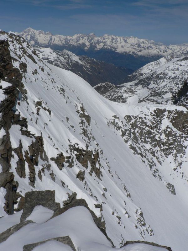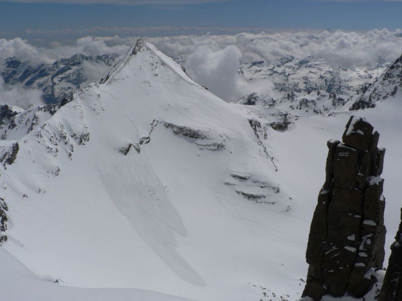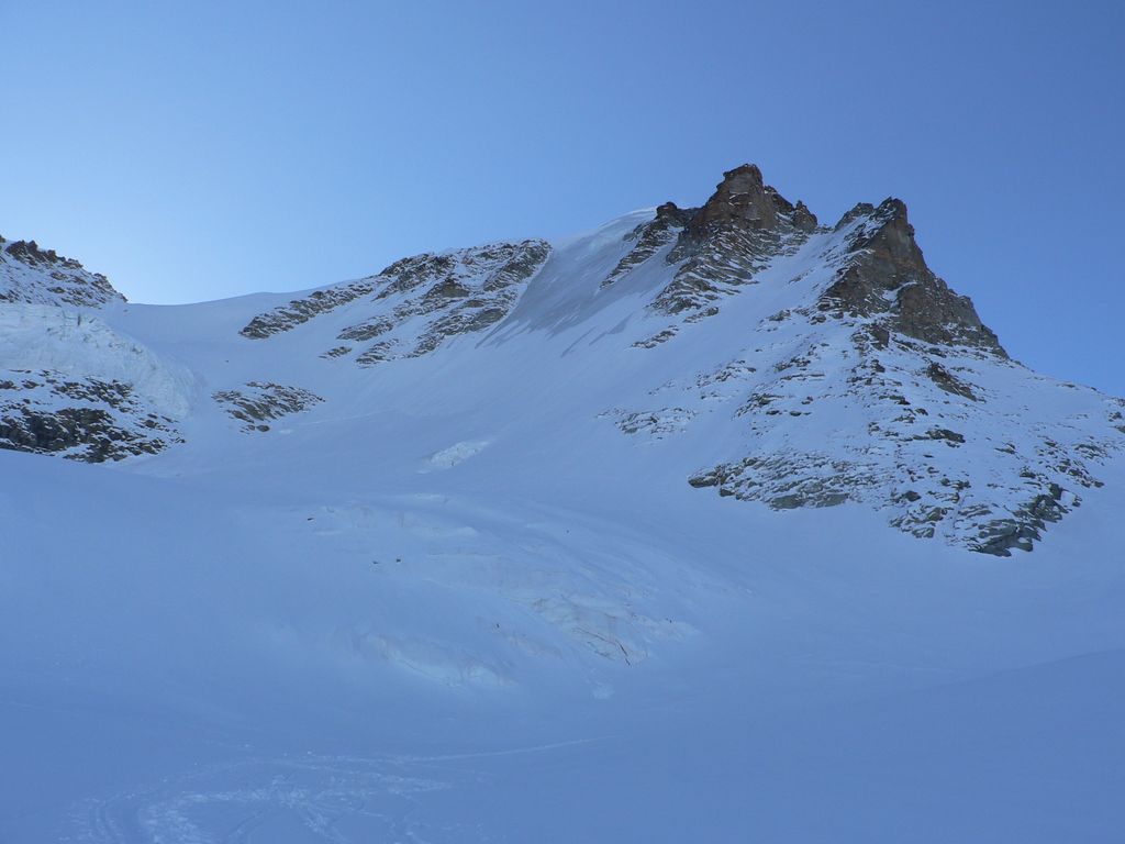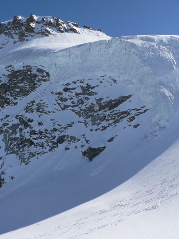Une plaque déclenchée sans doute par un skieur le long de séracs vers 3800m.