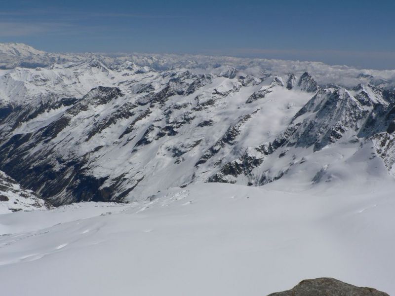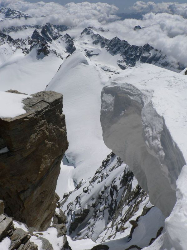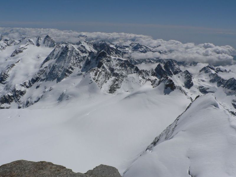 Glacier de Laveciau bien bouché. Par contre quelques trous après la jonction avec le glacier du grand Paradis vers 3750m.
