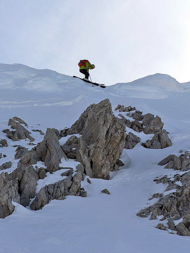 transformation encore incomplète en sud raide au-dessus de 2500 m. En nord, grosse quantité de gobelets sous la poudre récente à proximité des rochers