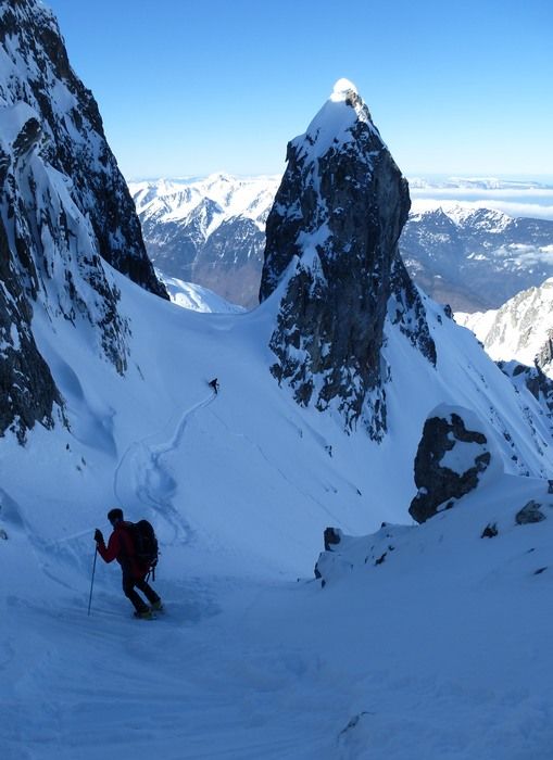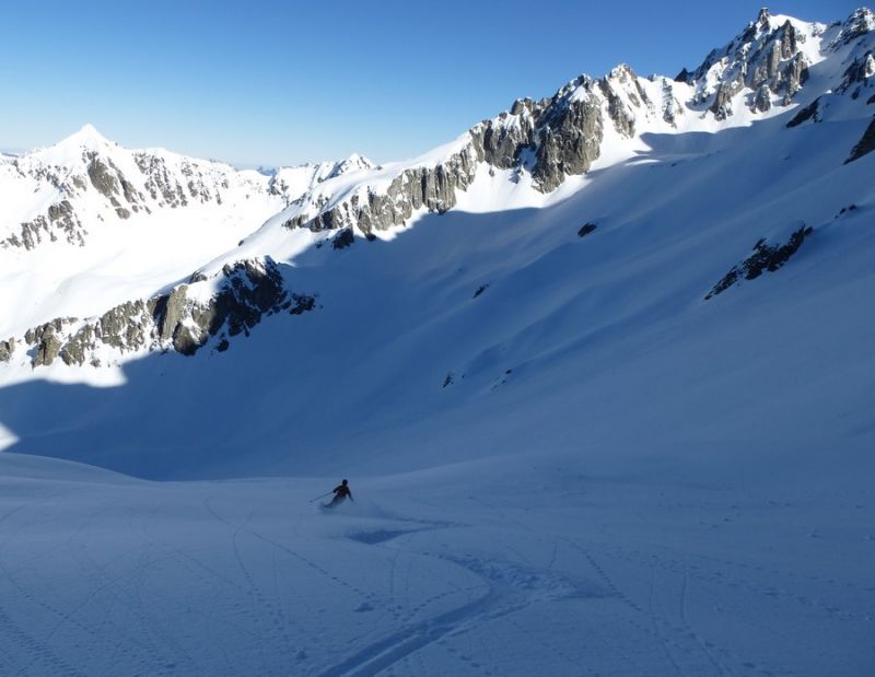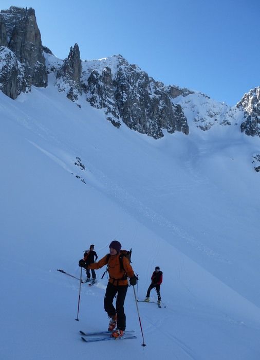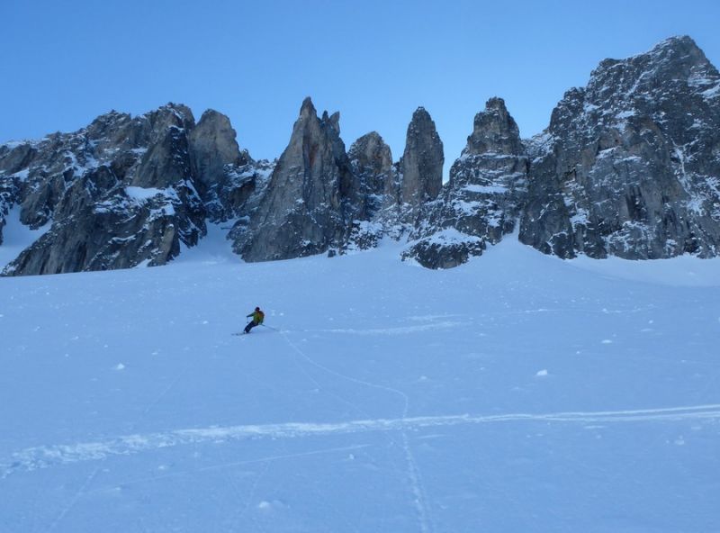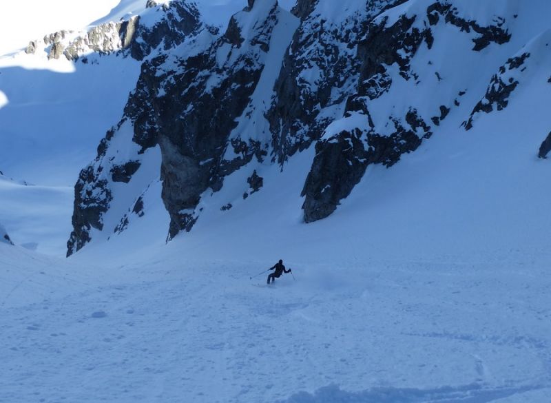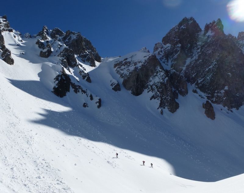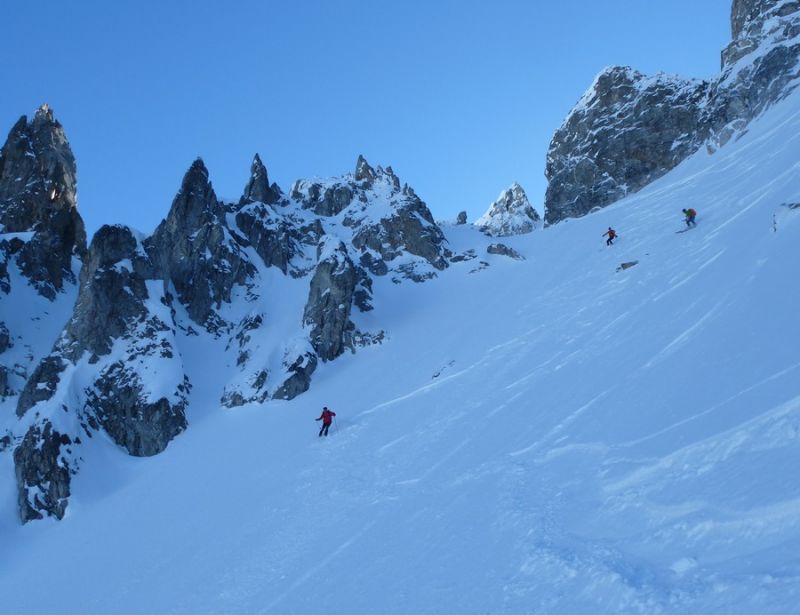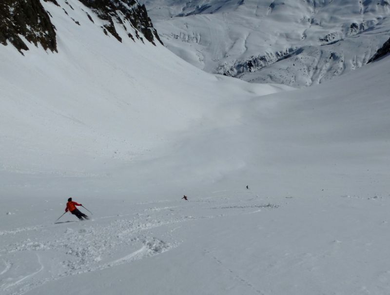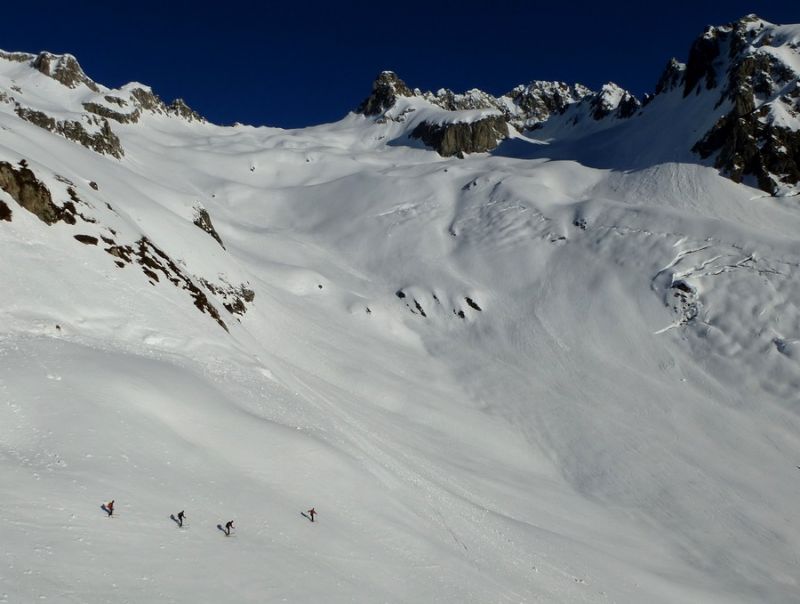 Encore poudreux en orientations ombragées, bon aussi ailleurs ce jour grâce à l'excellent regel. Quelques petites coulées superficielles dans le Pas du Jet. Le seul passage qui aurait pu être moins bon à skier, était le versant ouest du col des Blachères un peu crouté, mais on y était à la montée alors...