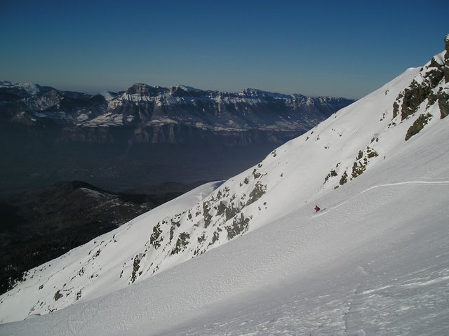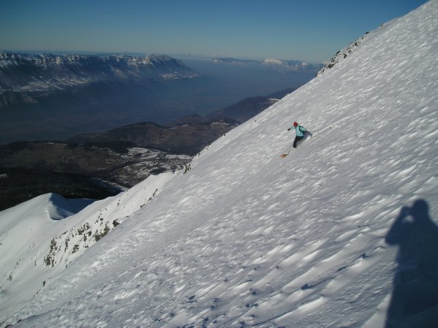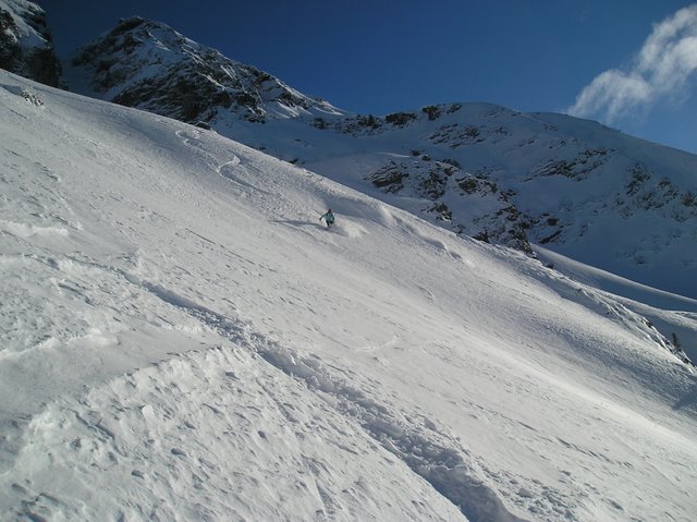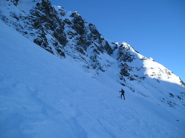 Partis pour faire les couloirs du coin, on a vite déchanté en voyant la même neige cartonnée que la veille (vallon du Merlet) qui nous a fait changer de plan. Très bonne surprise avec ces faces ouest bien conservées.