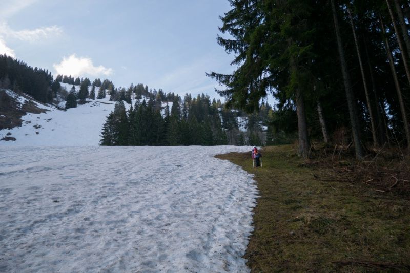 Réalisée ainsi, cette petite course d'initiation est skiable intégralement sur 600 m de dénivelé, probablement encore quelques jours alors qu'en empruntant les deux autres possibilités habituelles (B22/BEL ou montée intégrale par la piste de fond jusqu'au crêt du Poulet), on rencontre déjà des portions significatives imposant de déchausser.