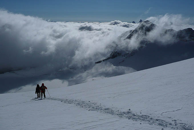 col N des Lacs => glacier de St-Sorlin => Cols du Grand Sauvage en A-R => glacier => Etendard puis retour. D+/D- 1800 dont pratiquement 1200 skis aux pieds (65% de ski environ). Ski = 3.1 (Sauvage)