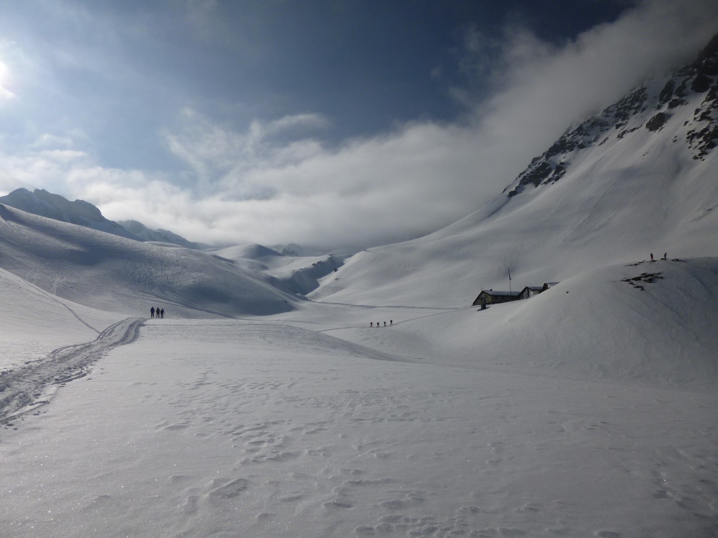 Au-dessus du refuge la neige est irrégulière, un peu poudreuse, souvent ventée. En dessous, avant la forêt, elle est poudreuse un peu ventée mais agréable à skier.