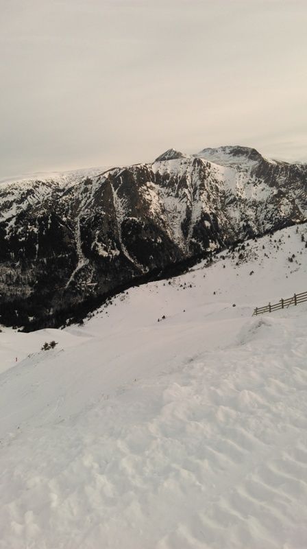 La neige a bien fondu depuis vendredi dernier, mais malgré les faible quantité pas une touchette ! La combe du Rif Mort est très bonne à skier, j'ai hésité entre remonter faire la combe ou la face sud de la grande montagne, j'ai opté pour cette dernière en espérant un décaillage, mais le soleil voilé n'a pas pu faire son effet. A la base je voulais peut être tenter la face sud du Pérollier mais quand j'ai vu l'état de la face Nord très peu fournie en neige je n'y suis pas allé ne sachant pas si ça passé derrière, vu de la matheysine on voit que ça peut passer sur le haut (langue de neige étroite au départ), mais sur le bas??? En tout cas 2 autres skieurs sont montés au Pérollier, je ne sais pas si ils sont descendus en face sud, j'avais déjà basculé sur la station. J'ai fait la descente sur la station en suivant les endroits damés, pas envie de tenter le diable avec mes skis. La dernière partie non damé passe bien entre les taupinières. Il faisait chaud mais le soleil voilé n'a pas trop travaillé la neige, il devrait en rester assez pour ce week-end.