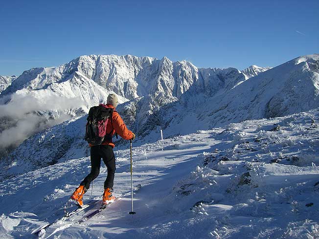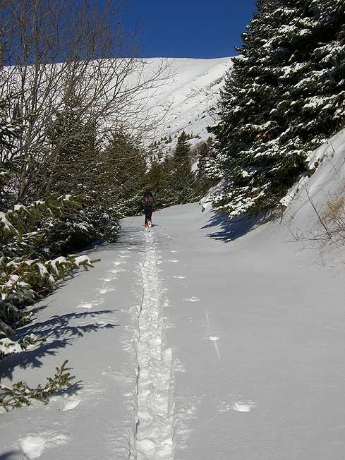 Montée au Grd Serre par la VN depuis la Chaud (réhabilitée depuis que la station n'existe plus), descente face est sur les Pâtres. remontée nord au Perollier. Descente en fae sud mais pas par la directe plaquée mais par une combe moins raide près du col de l'Oulière. ski : 2.2. D+/D- : 1200