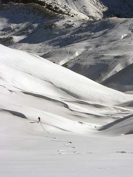 Gros transport par le vent de nord, vu aussi sur Taillefer et Belledonne. ll faut skier dans les creux où la neige s'est amoncelée. Plaques en faces sud (et sûrement autres orientations) : neige rapportée dense sur neige roulée. On n'a pas été dans des pentes >30°.