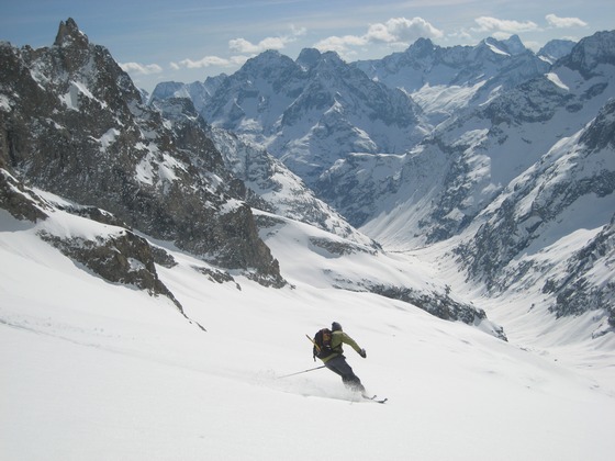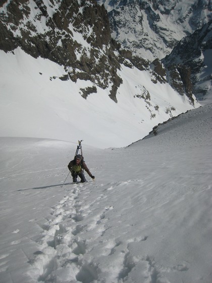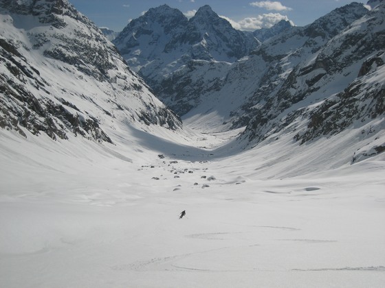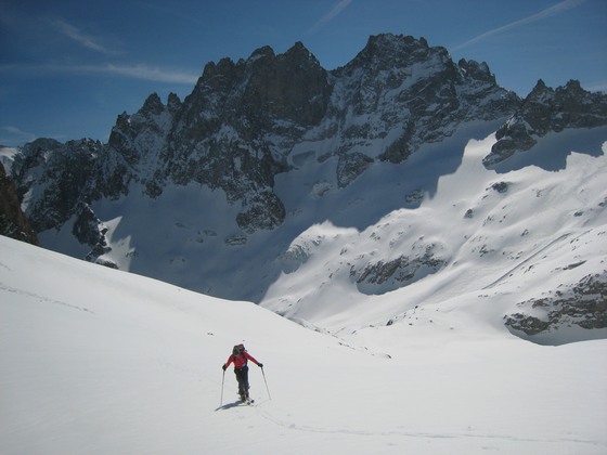 Merci à LAL pour cette superbe boucle dans une ambiance haute montagne .Il ne faut pas sous-estimer le parcours car le col du Pavé face est ,peut etre difficile à négocier par manque de neige ( c'était bon pour nous).La descente face ouest du Pavé est bien expo .Nous sommes parti un peu bas et ça devient tendu au dessus des gros séracs ,pour rejoindre la rive droite ou se situe le passage.Il vaux mieux longer les rochers à droite en sortant du col , quitte à remonter un peu. D+2400m
