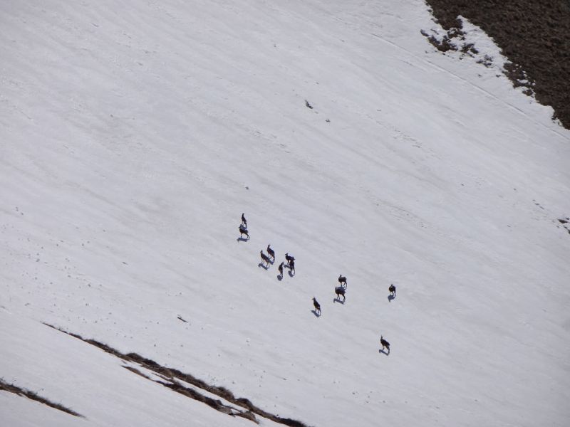 pentes sud presque intégralement dénéigées alors qu'au nord au dessus de 1900 la couverture néigeuse tranformée est intégrale. Néige de printemps au dessous de 2300mn néiges froides, souvent tolées avec un peu de poudre rapportée au dessus. Les épaisseurs sont faibles par rapport aux saisons précédentes.