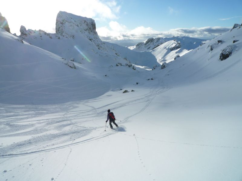 Sortie inopinée de l'aprés midi en comptant sur les éclaircies qui se sont effectivement produites.Bon ski avec un supplément de petite poudre dans la Combe du Van et descente par les pistes depuis la Croix pour éviter la neige pourrie.