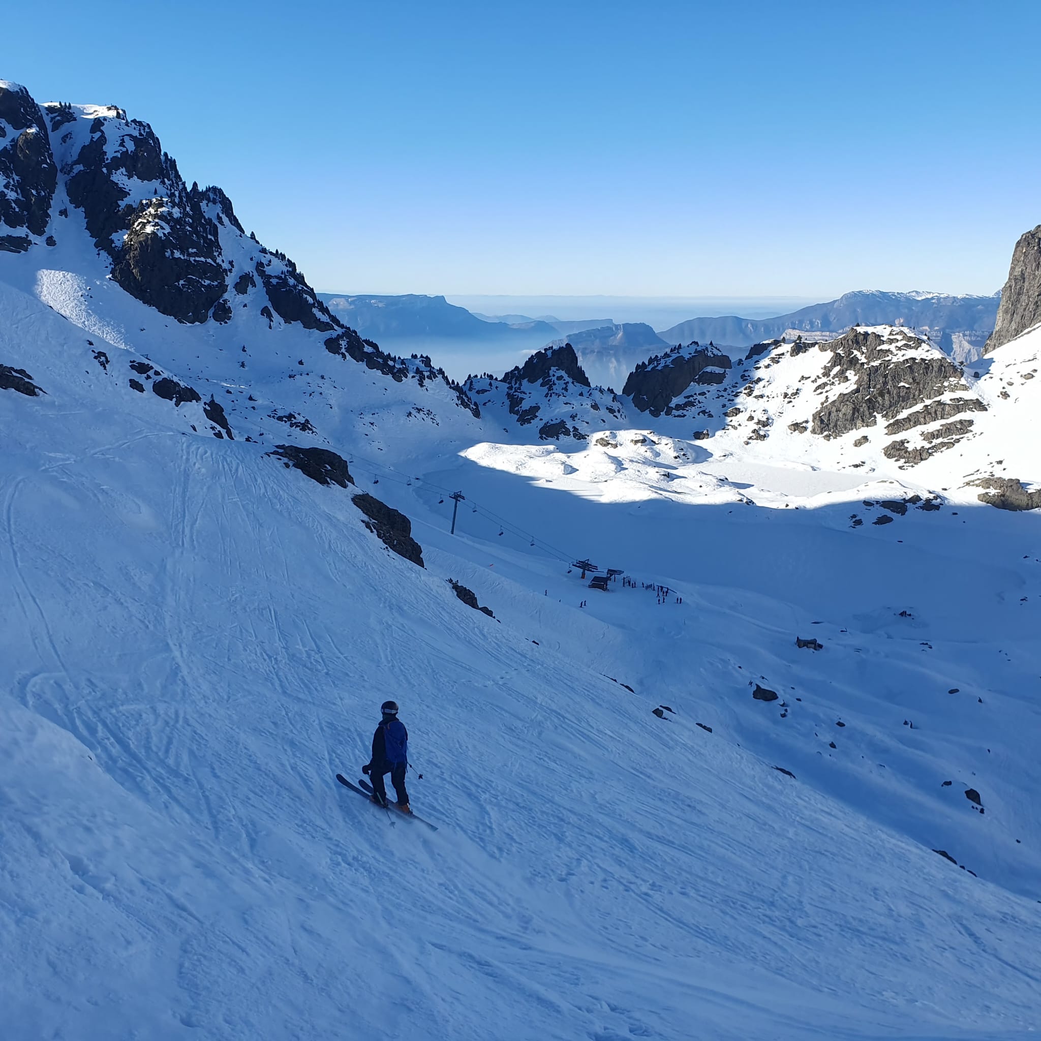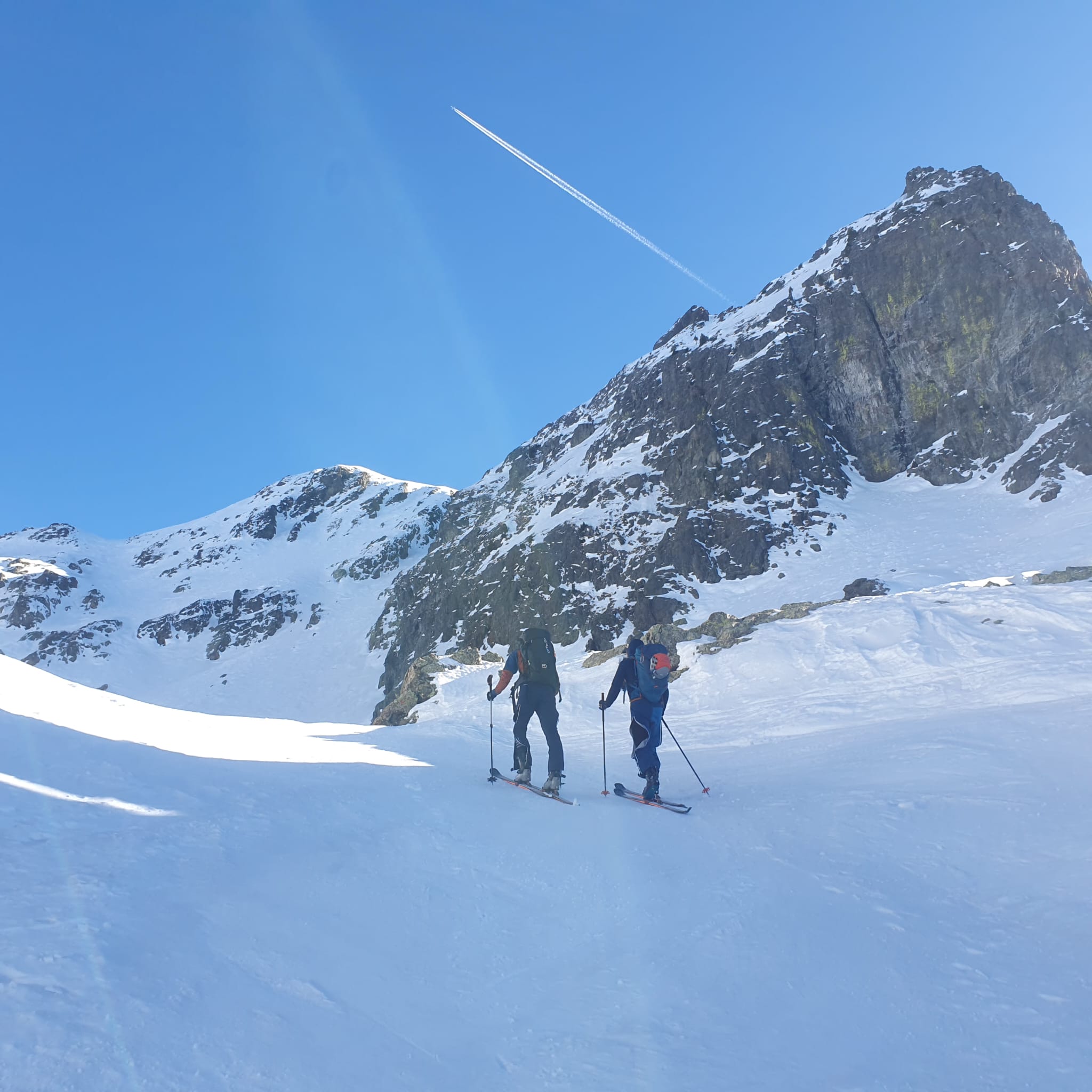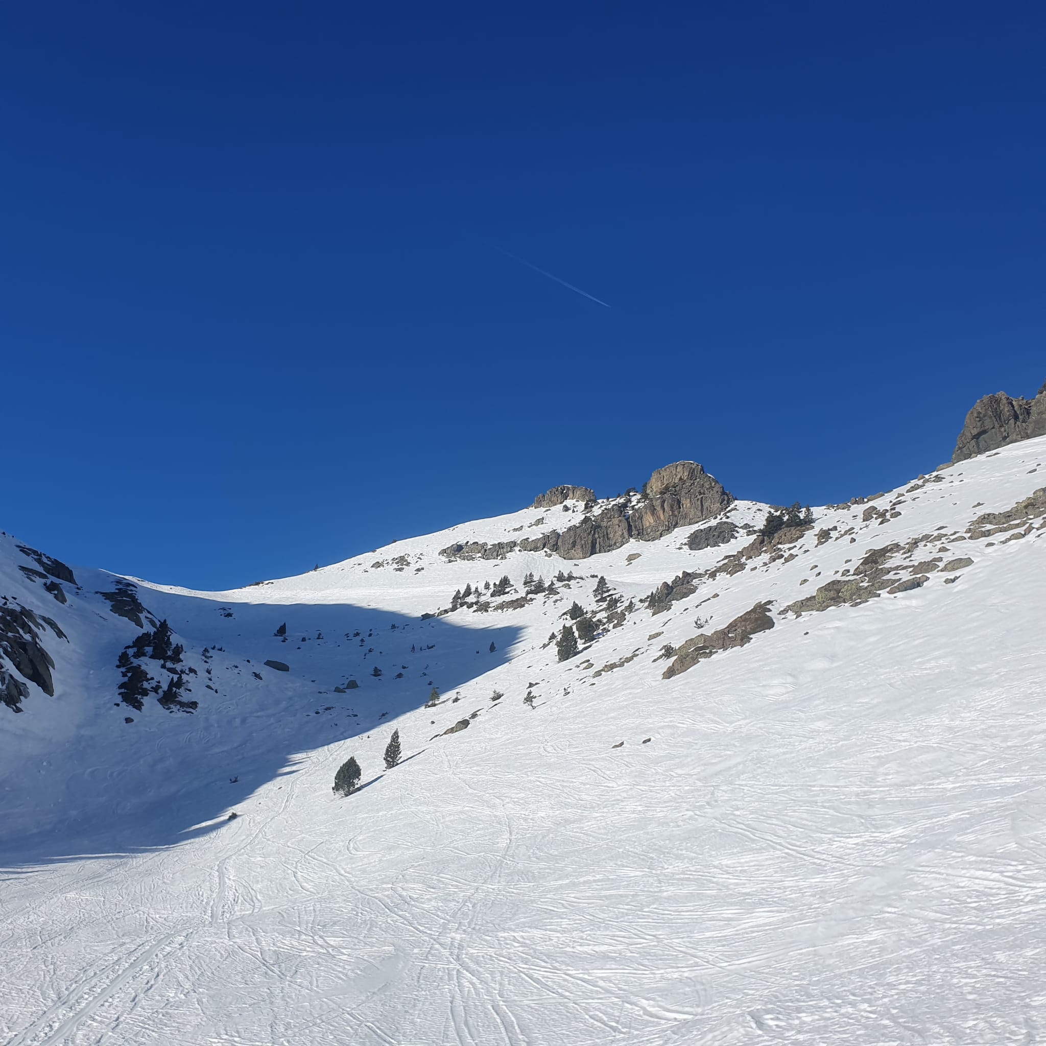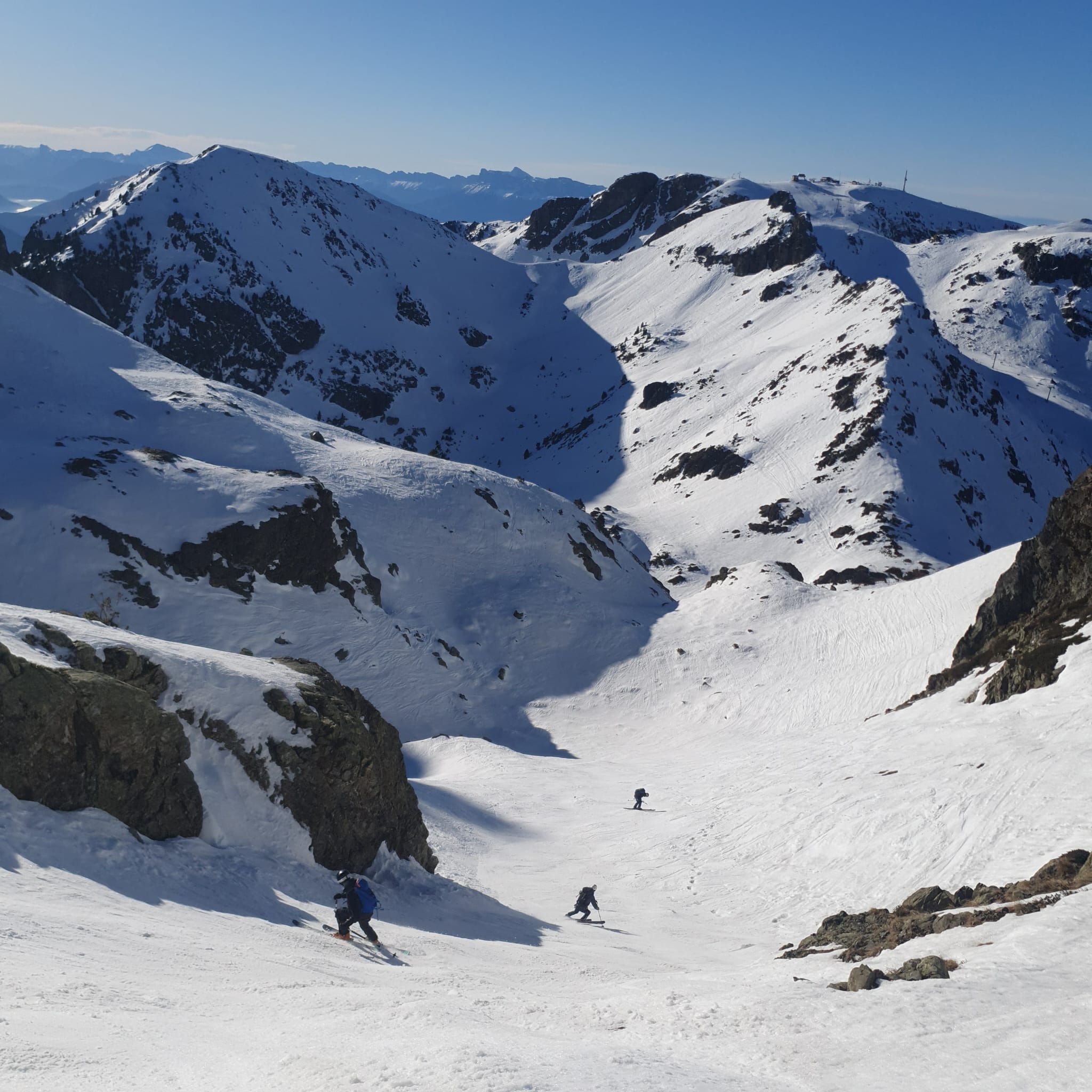 Nous étions partis pour suivre A2, mais nous avons préféré suivre le soleil par le col de la Botte pour chercher les pentes SE dessous qui offraient une bonne neige transformée. Le retour s'est fait en prenant le télésiège des lacs Roberts.
