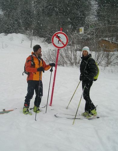 Surprise à notre arrivée, le panneau d'interdiction a été remis.. on est monté bien sagement et autant que possible le long de la piste...