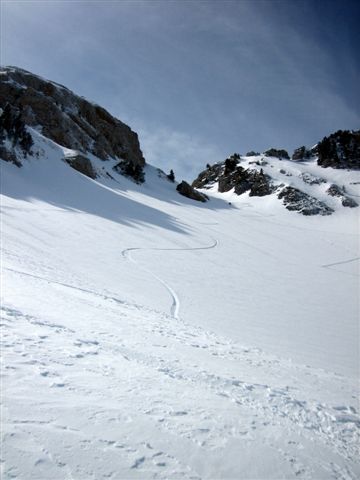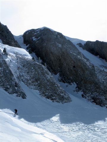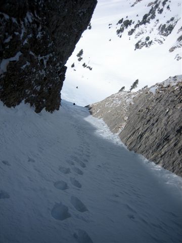 Pas de la ville, traversée et remontée du couloir en AR. Stop sous la corniche. Descendu un peu en ouest puis remonté au Pas de la Ville.