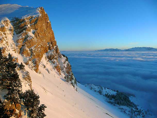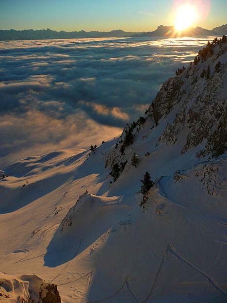 On en a pris plein les yeux dès avant le lever du soleil et toute la journée. Croisé seulement trois personnes en raquettes dans la forêt peu après le départ à 11h. Skiabilité correcte en face ouest du Veymont et, grosse surprise, on a pu lâcher les chevaux du pas de la Ville jusqu'au parking dans ce secteur resté poudreux et ayant bénéficié d'un excellent enneigement. D'autres images [ici->http://lionel.tassan.free.fr/images%202007/11/17%20veymont/index.htm]