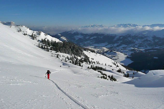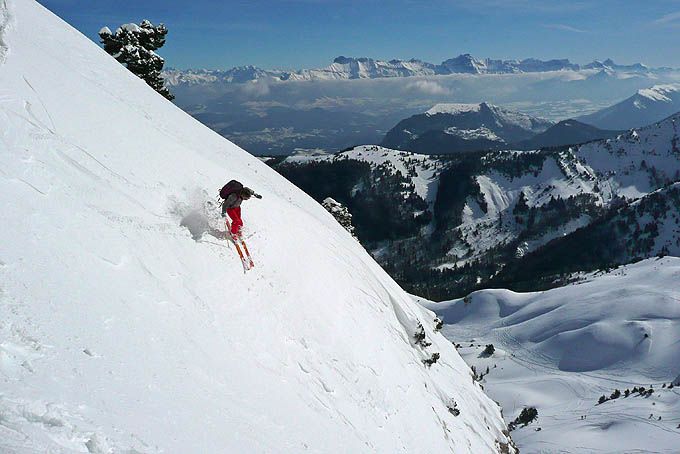 Neige très compactée en versants nord. Par contre, les pentes sous le vent (sud-est à sud-ouest) sont chargées avec de la neige dense rapportée sur une couche parfois fragile. J'ai testé pour voir sur un petit bombé en face sud-ouest de Pierre Blanche et ça part facilement en plaque ; celle-ci pouvant être importante sur de grandes surfaces.