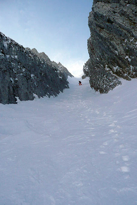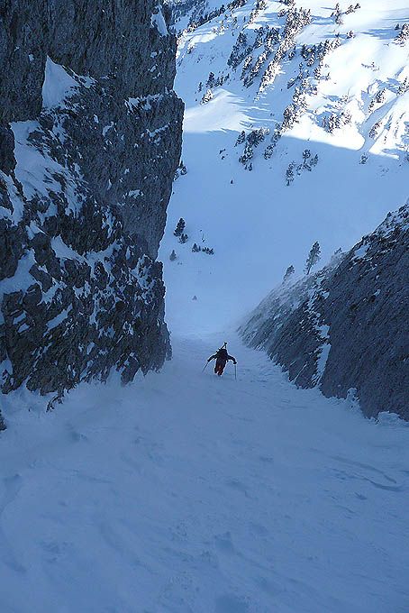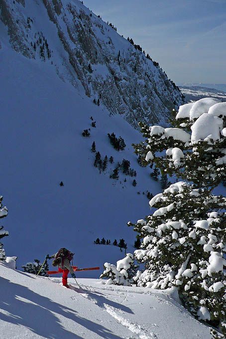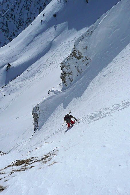 Ce n'est pas mon habitude de tricoter, préférant les circuits logiques mais les aléas du jour dont les conditions nivo nous ont contraint à faire ainsi ce jour : Gresse => pas de la Ville => couloir de l'Avion en A-R => Pierre Blanche sud-ouest en A-R => pas de la Ville => sous le pas de la Ville en est => couloir sud-est de Pierre Blanche (un couloir dérobé qui bute contre des rochers à mi-face) => Gresse. Pour prolonger le début d'après-midi, nous sommes ensuite allés faire la classique de la Pâle, en face.