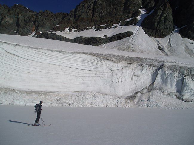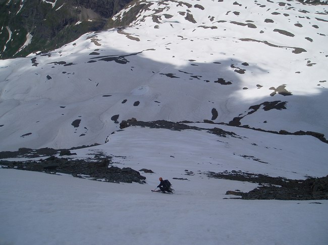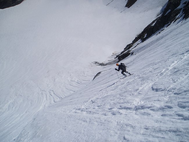 Longue et jolie boucle très contemplative agrémentée de 2 courtes descentes un peu plus techniques. La face Nord de l'Aiguille Rousse est une vraie couenne, c'est court mais ça ne descend guère en dessous de 45 avec une entrée dans la face très technique aujourd'hui. Quant à la face ouest de l'Ouille Noire on pouvait partir directement du sommet cette année avec 2 courts passages à 45. On voulait aussi essayer la face ouest de la Petite Aiguille Rousse mais elle n'était plus assez enneigée.