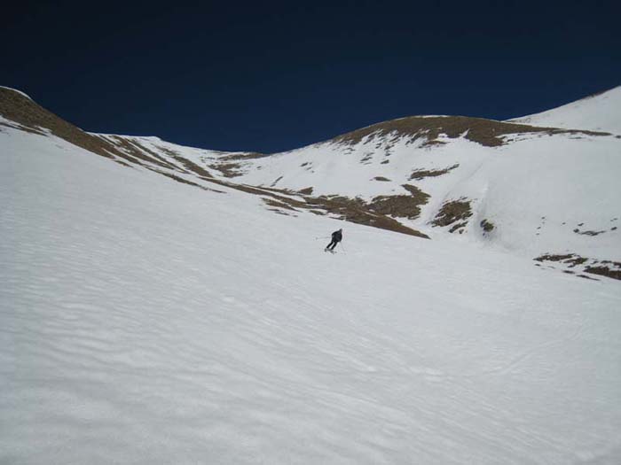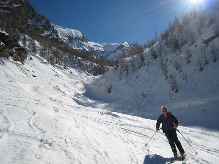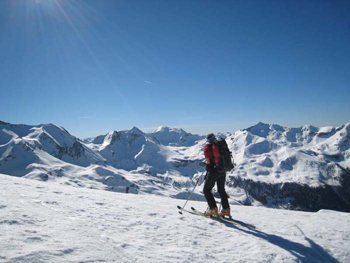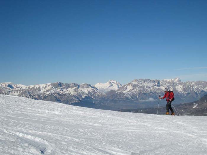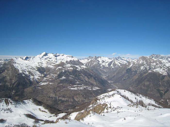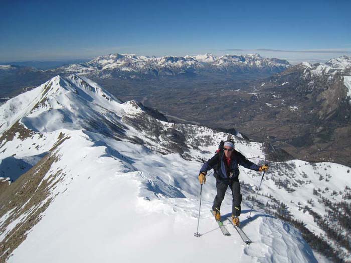 Montée C9 de Serre Eyraud, arête ouest Gde Autane, descente face SE (D6) jusqu'à 2100, petite montée, petite descente pour traverser sous Combeau, passage de la crête en amont du Col de Combeau, descente par le ravin de la marinière où la neige est ferme (résidus avalanches bien lissés). Grand ski, déniv 1800m