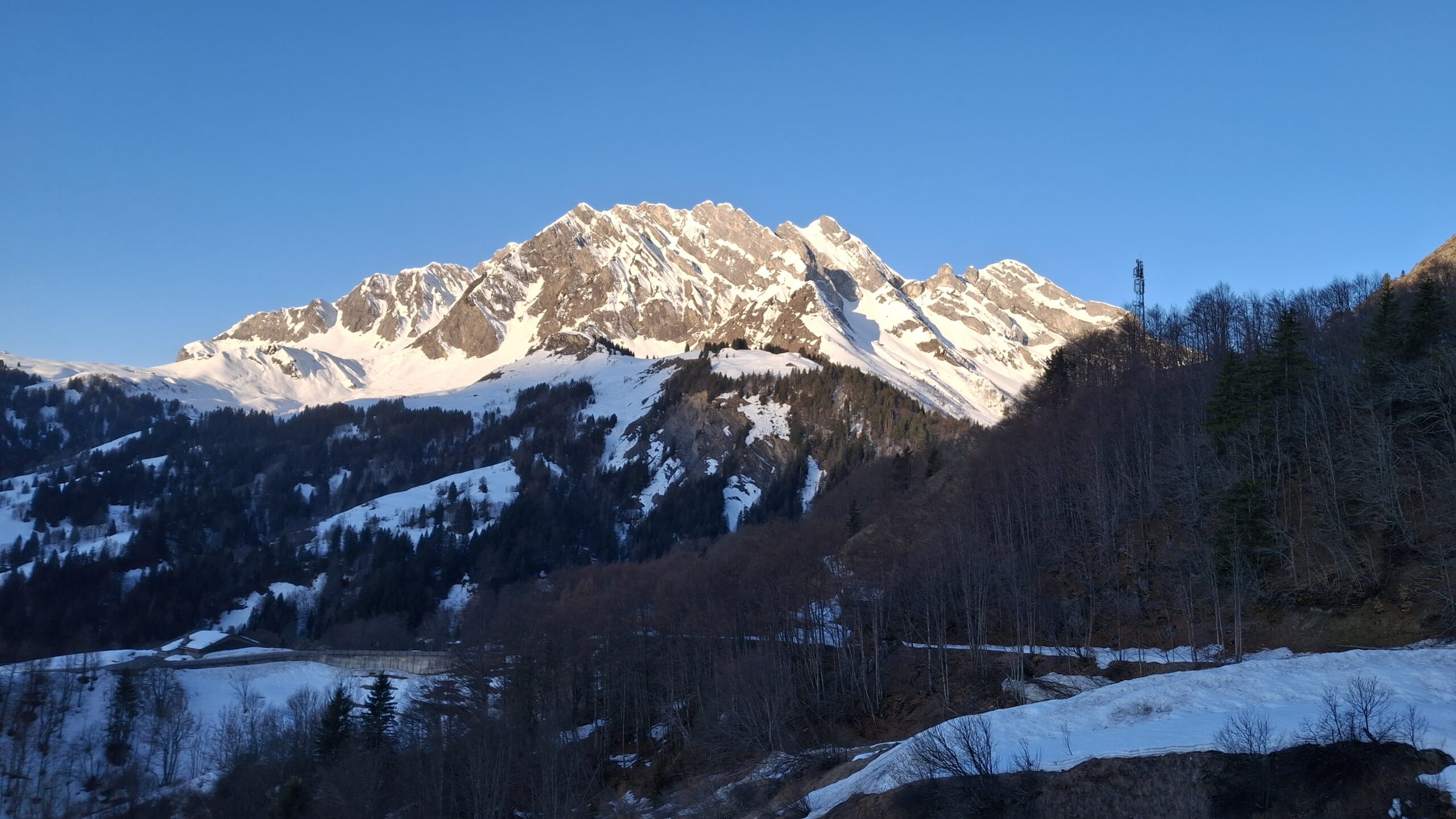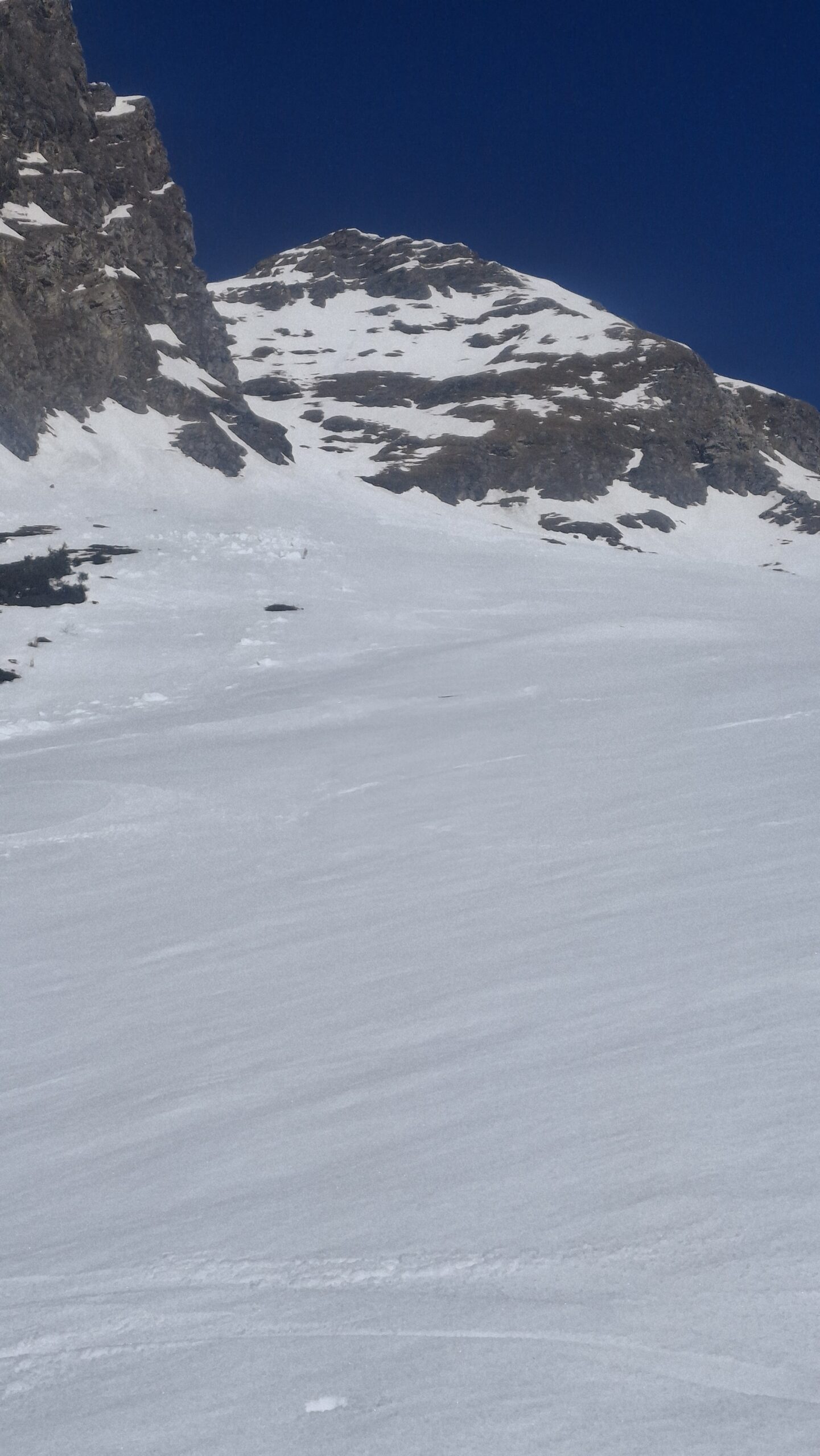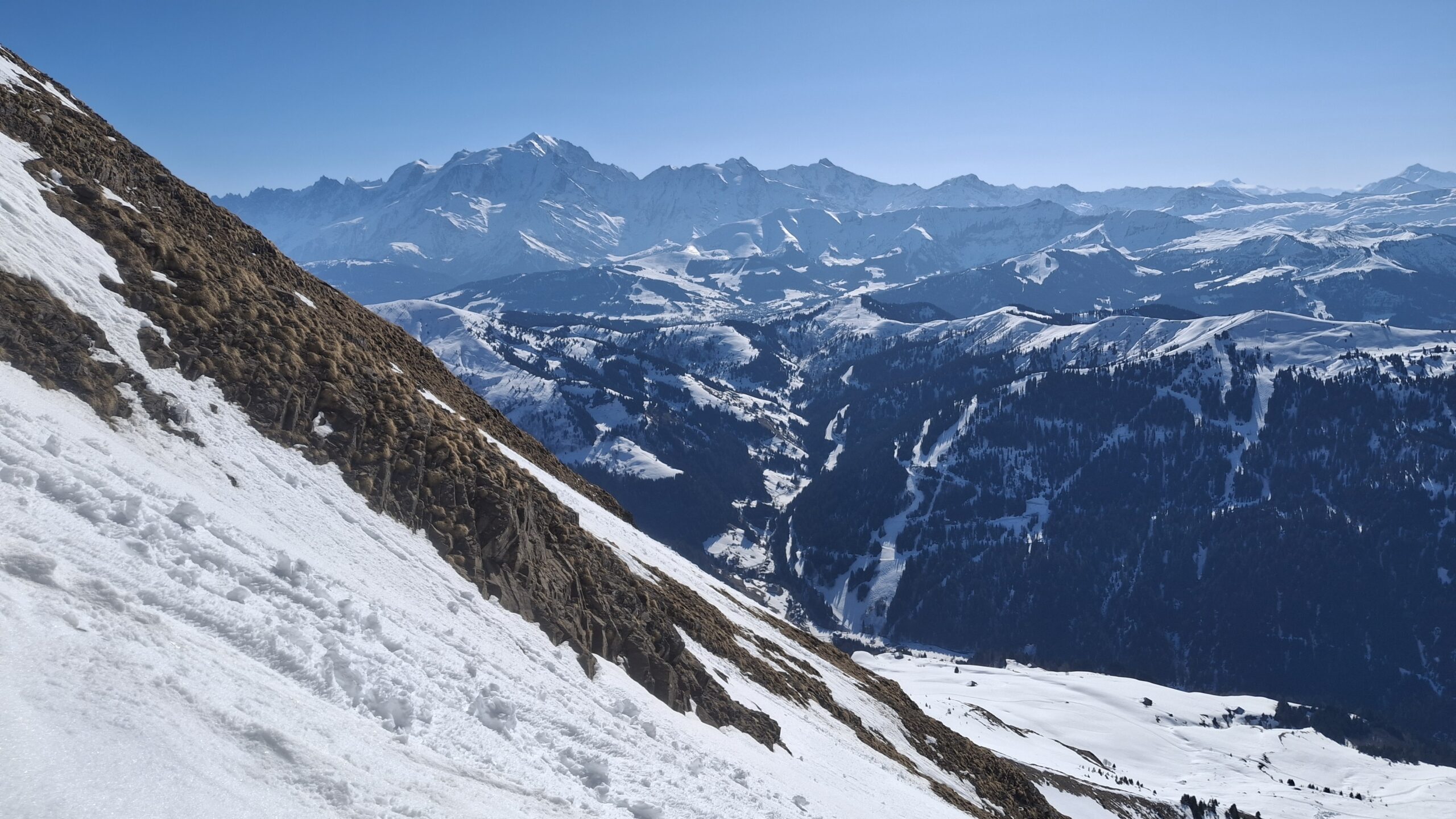 Voyage dans les pentes suspendues du versant Sud des Aravis. Le regel du jour est très bon avec même un petit air. La diagonale est l'un des rares itinéraires qui paraît continu sur la webcam de la Torraz Hormis quelques discontinuités sur le chemin du bas et les deux belles coulées, c'est un billard de haut en bas. Attaque de la descente à 10h45