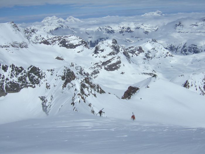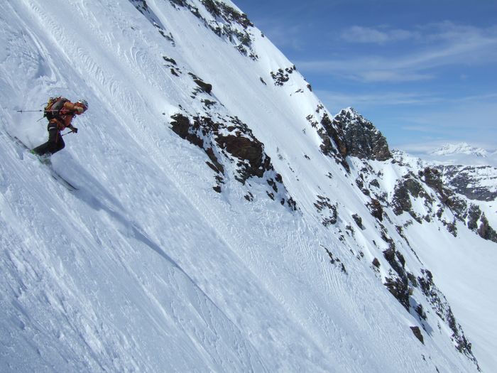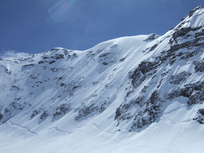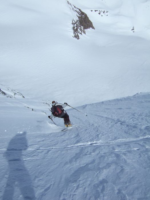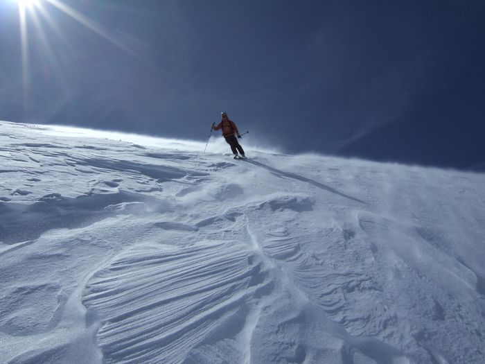 Face N en très bonnes conditions, poudre dense parfaite alimentée par les spin drifts sauf sur les 100m du haut où le vent a tout aplati. Néanmoins le grip est resté très bon.