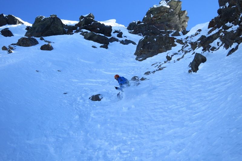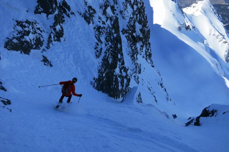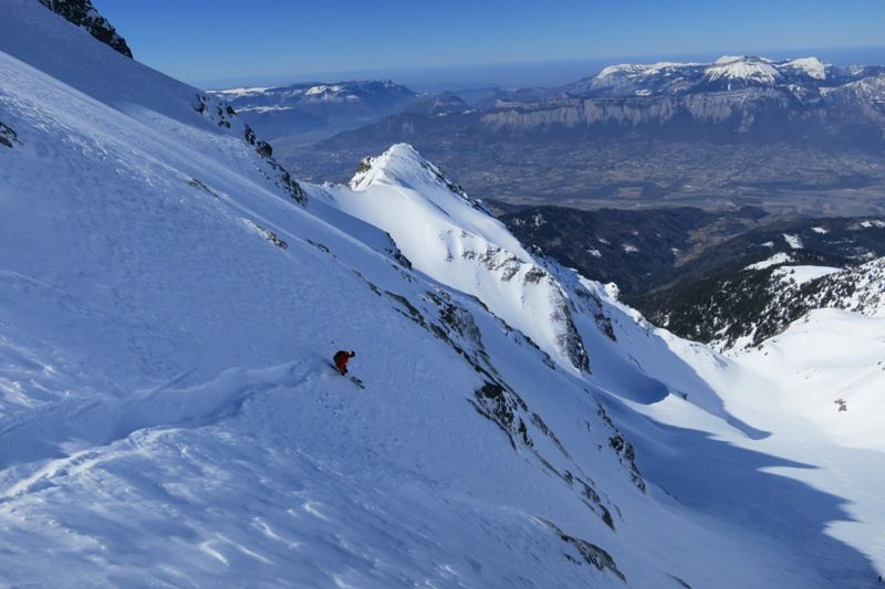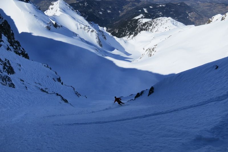 Bonne poudre dense dans la face, ça coule à peine à la descente. Travail du vent sensible dans la combe de la Sitre, mais ça reste bon à skier