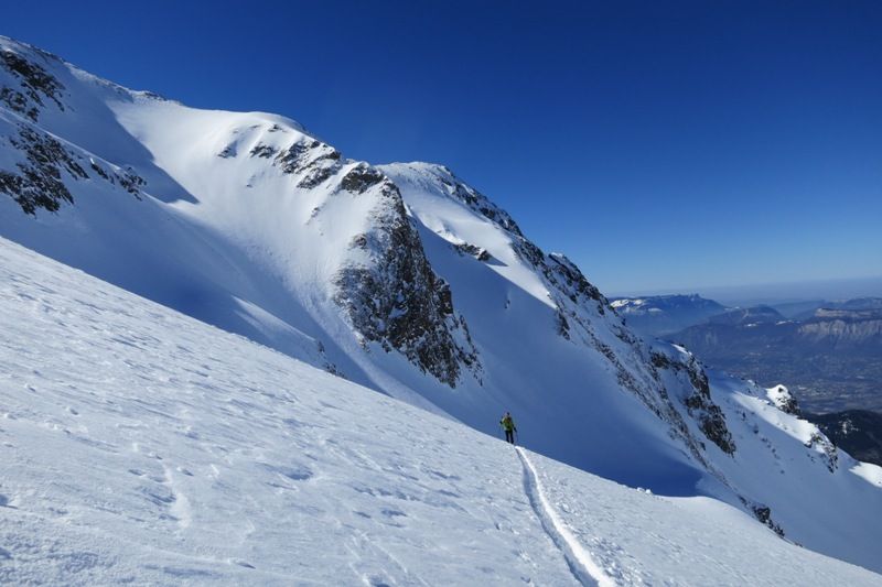 A/R depuis Freydières. Descente jusqu'à la Sitre pour profiter de la combe W, avant de remonter au col du Loup