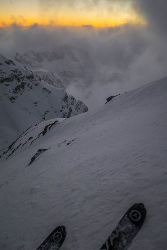 Parti pour faire de la photo, j'ai décidé de prendre le matériel de glisse (skis light). Ai fait 3 descentes pour rentabiliser le portage en baskets, pas désagréable sur cette petite neige douce. Je ne ferais pas ça toute la saison mais ça permet de patienter en attendant la neige.